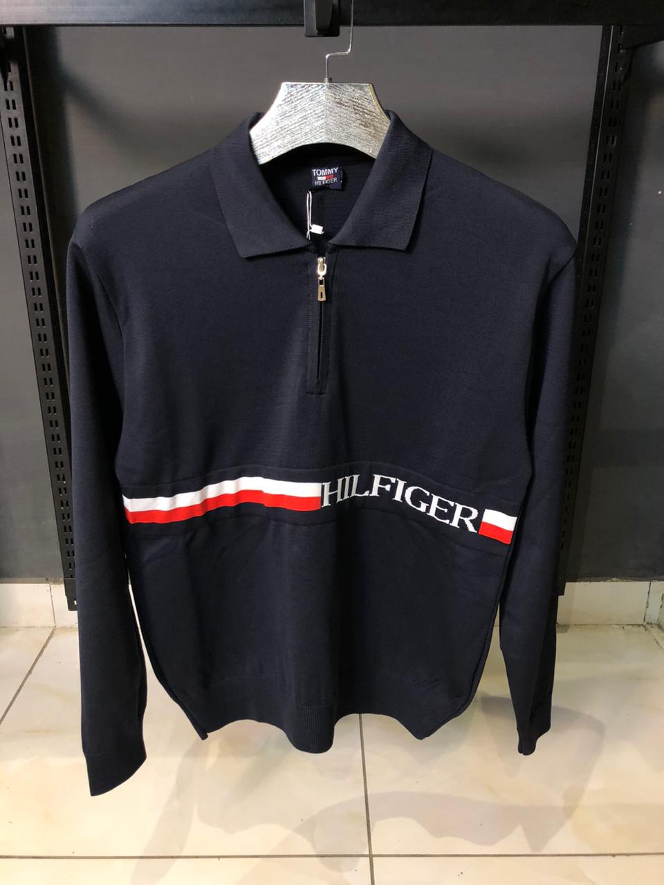 Tags: Global Stripe Polo, Hilfiger Quarter Zip, Men's Hilfiger Apparel, Navy Designer Knit, Tommy Hilfiger Sweater