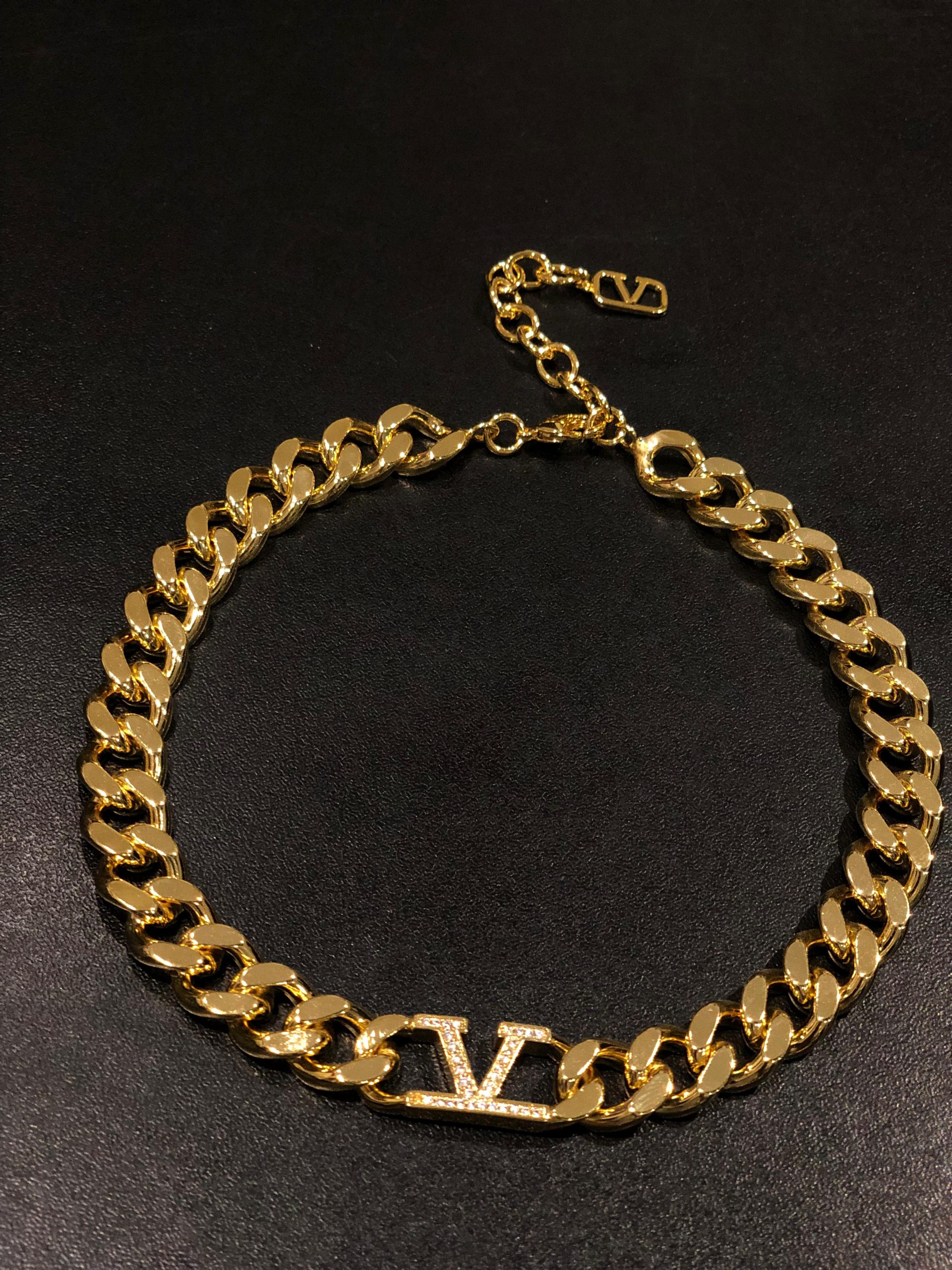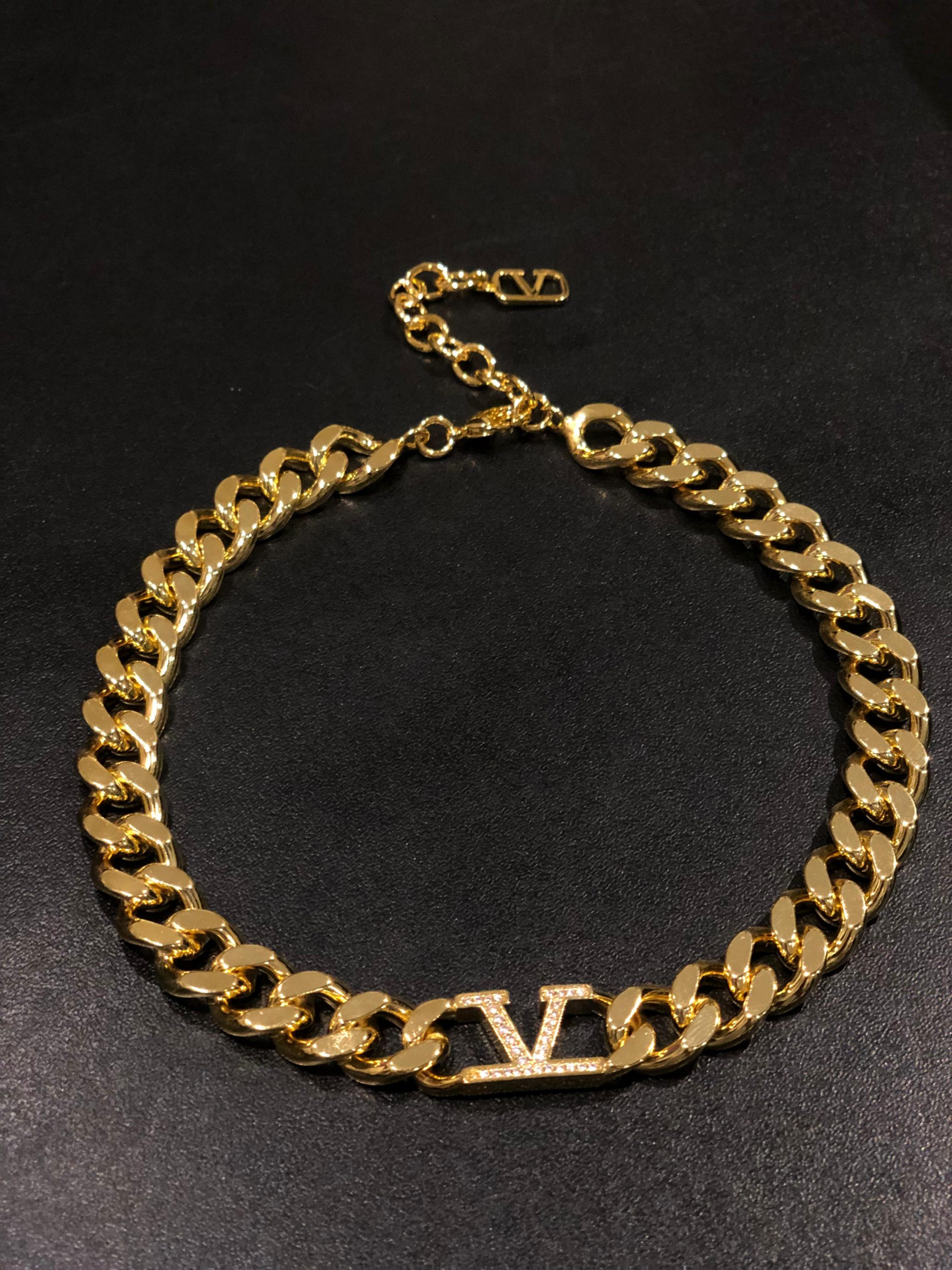 This stunning necklace features Valentino’s iconic VLogo, beautifully accented with Swarovski® crystals. Crafted in polished metal, it adds a touch of sparkle and luxury to any outfit.